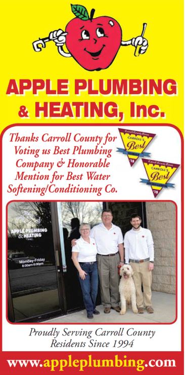 The results are in! Apple Plumbing was nominated for the fourth year in a row as Carroll County’s Best Plumber in the Carroll County Times’ “Carroll’s Best” contest. This year, Apple also recived an Honorable Mention for Best Water Softening/Conditioning Company.